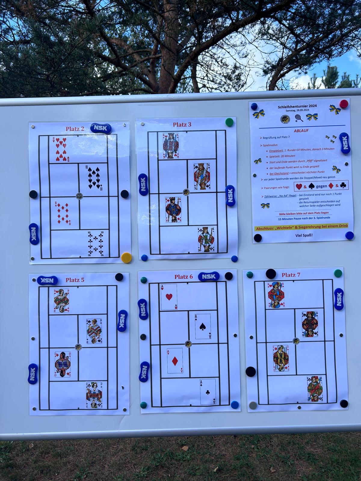 Bei hoffentlich schönem Wetter freuen wir uns auf tolle Mixed-Begegnungen (die Partner werden nach jeder Runde neu ausgelost) und ein nettes Zusammenkommen bei Sekt oder Selters, um diejenigen zu küren, die die meisten Sieges-Schleifchen ergattern konnten.