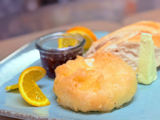 Für alle, die es lieber herzhaft-cremig mögen, empfehlen wir unseren im Bierteig gebackenen Camembert, serviert mit Wildpreiselbeeren.