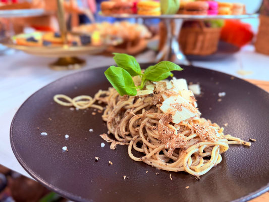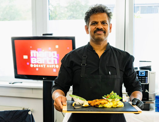 Und dann gibt es noch eine andere Seite von Sangar, von der wir wissen, das es sie gibt, die sich aber nicht immer in der Öffentlichkeit präsentiert: Sangar der Kochkünstler. Vor einigen Tagen nahm Sangar, der unter anderem auch für das Catering für TV-Produktionen von Mario Barth, Steffen Henssler und Cindy aus Marzahn verantwortlich zeichnet, bei der Produktion der Sendung "Mario deckt auf" nicht nur hinter den Kulissen teil. In der Sendung, die heute Abend ausgestrahlt wird, geht es um ein allen Eltern nur zu gut bekanntes Thema: die Qualität des Schulessens, verbunden mit der Frage, ob bzw. wie man diese verbessern kann. Und hier kommt Sangar ins Spiel, der hinter den Kulissen drei Gerichte vorbereitet hatte, die er dann vor der Kamera präsentiert - und anschließend mit Mario diskutiert. Und siehe da, Sagar zeigt: auch mit geringeren finanziellen Mitteln lässt sich Schulessen auf den Tisch bringen, das nicht nur nährreich ist - sondern eben auch richtig gut schmeckt.
